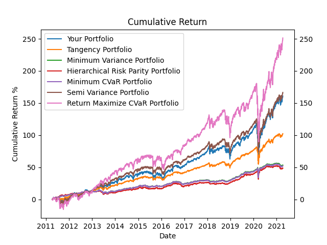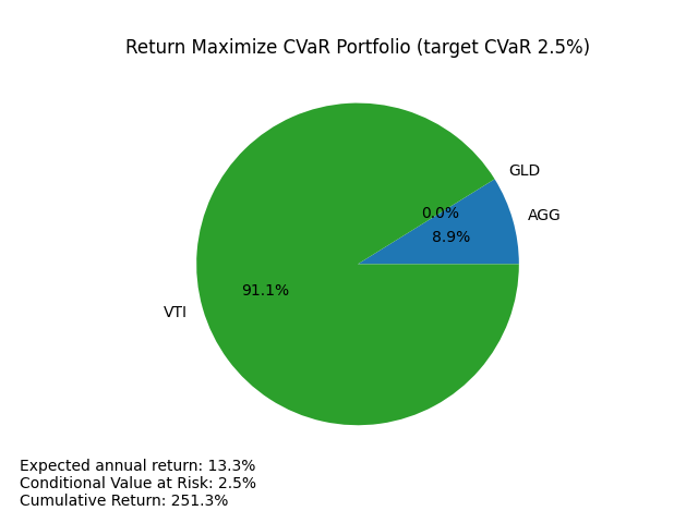 'portfolio': 'Return Maximize CVaR Portfolio (target CVaR 2.5%)',