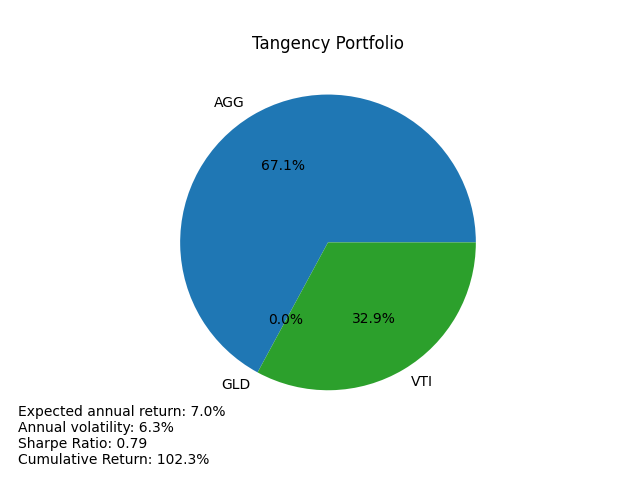 'tickers': {'AGG': 0.67099, 'GLD': 0.0, 'VTI': 0.32901}},