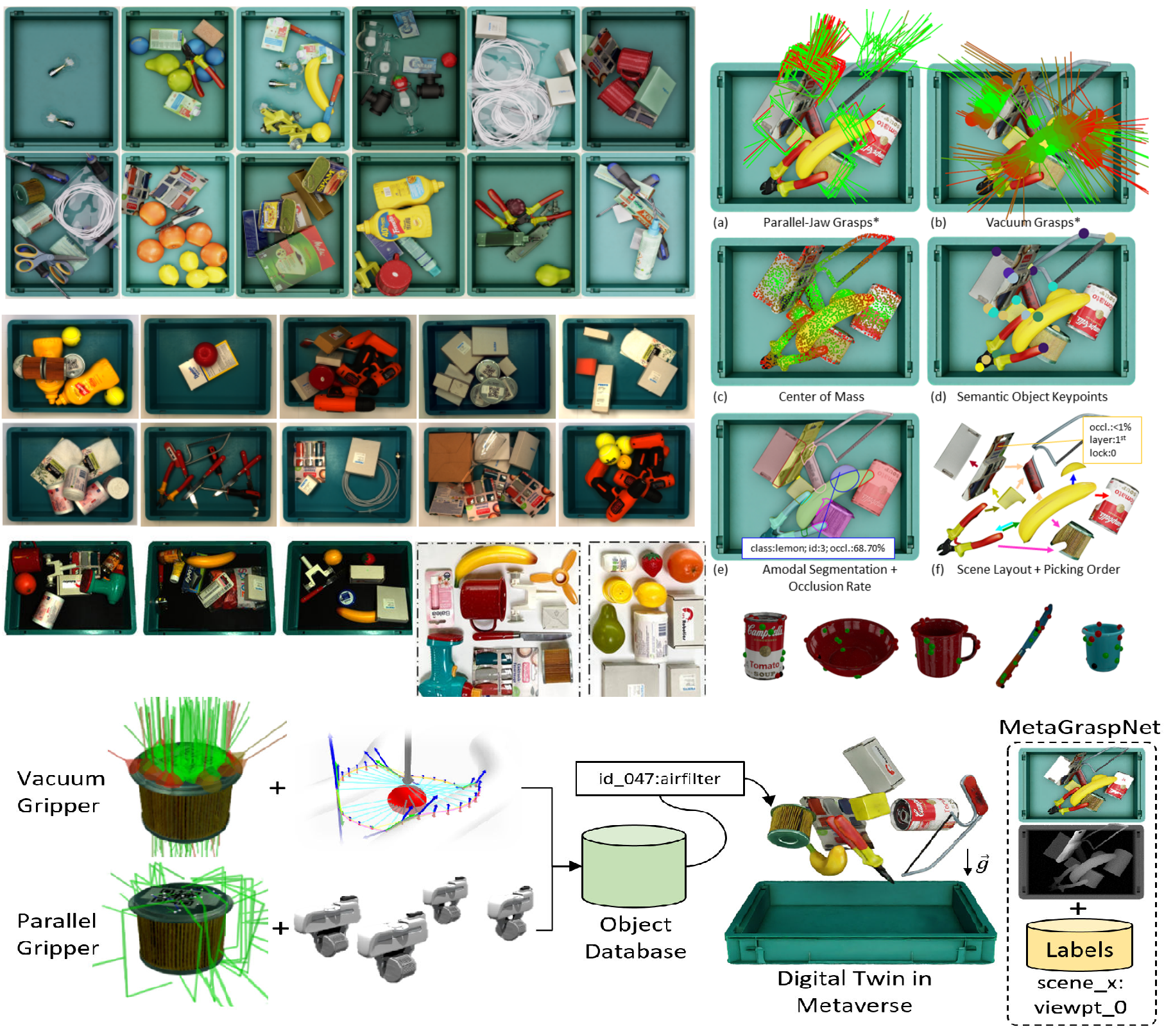 MetaGraspNet: A Large-Scale Benchmark Dataset for Scene-Aware Ambidextrous Bin Picking via Physics-based Metaverse Synthesis
