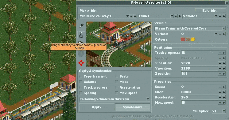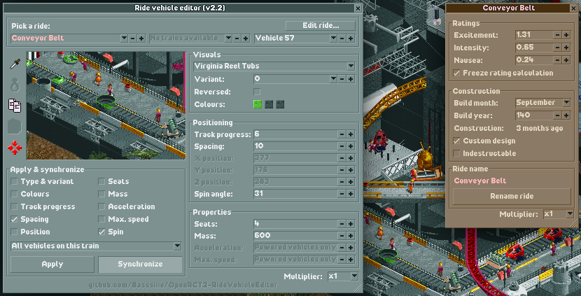 - Git Gud at OpenRCT2 #93: Vehicle hacking with the Ride Vehicle Editor Plugin!, by Deurklink