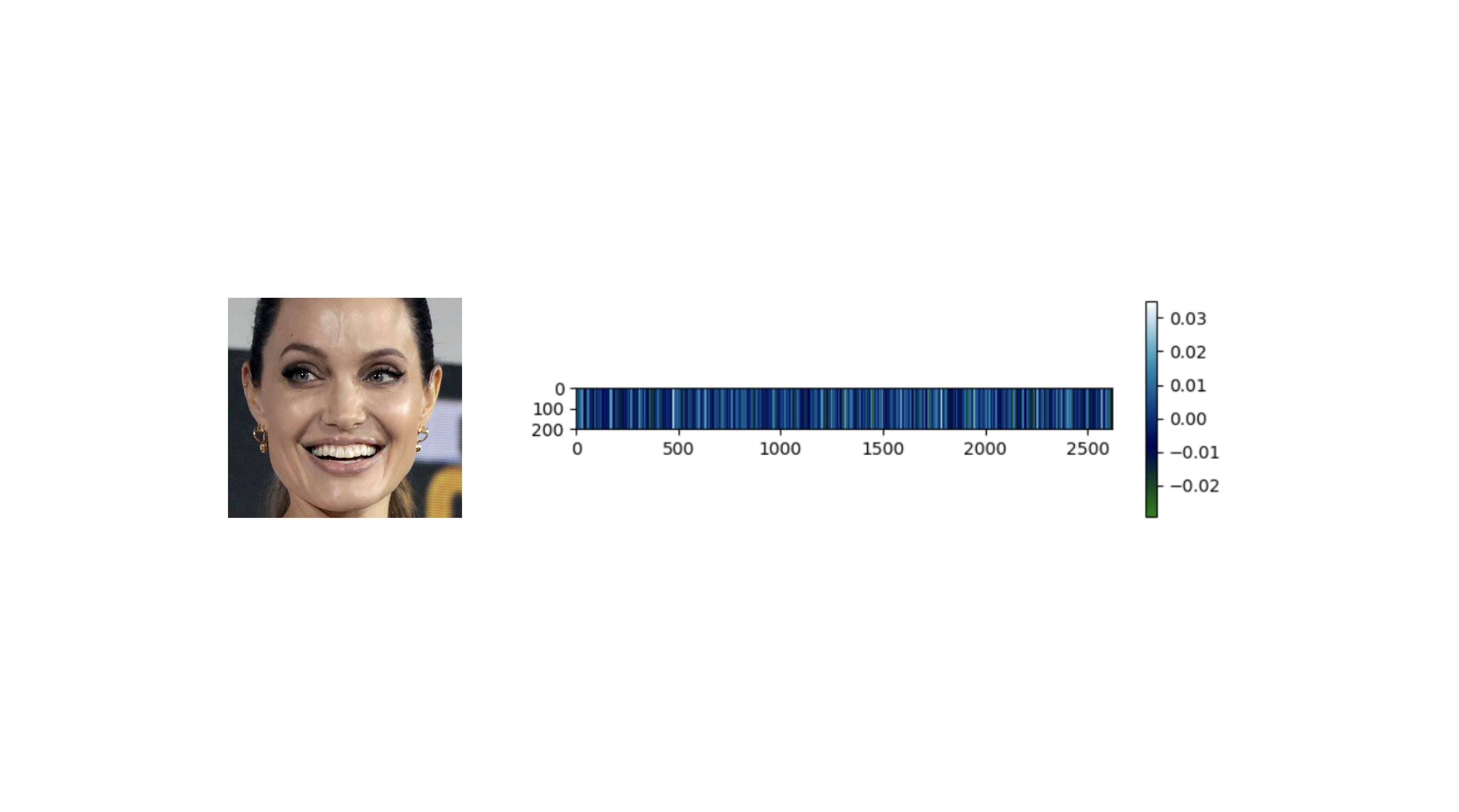 embedding_objs = DeepFace.represent(img_path = "img.jpg")Embeddings can be plotted as below. Each slot is corresponding to a dimension value and dimension value is emphasized with colors. Similar to 2D barcodes, vertical dimension stores no information in the illustration.