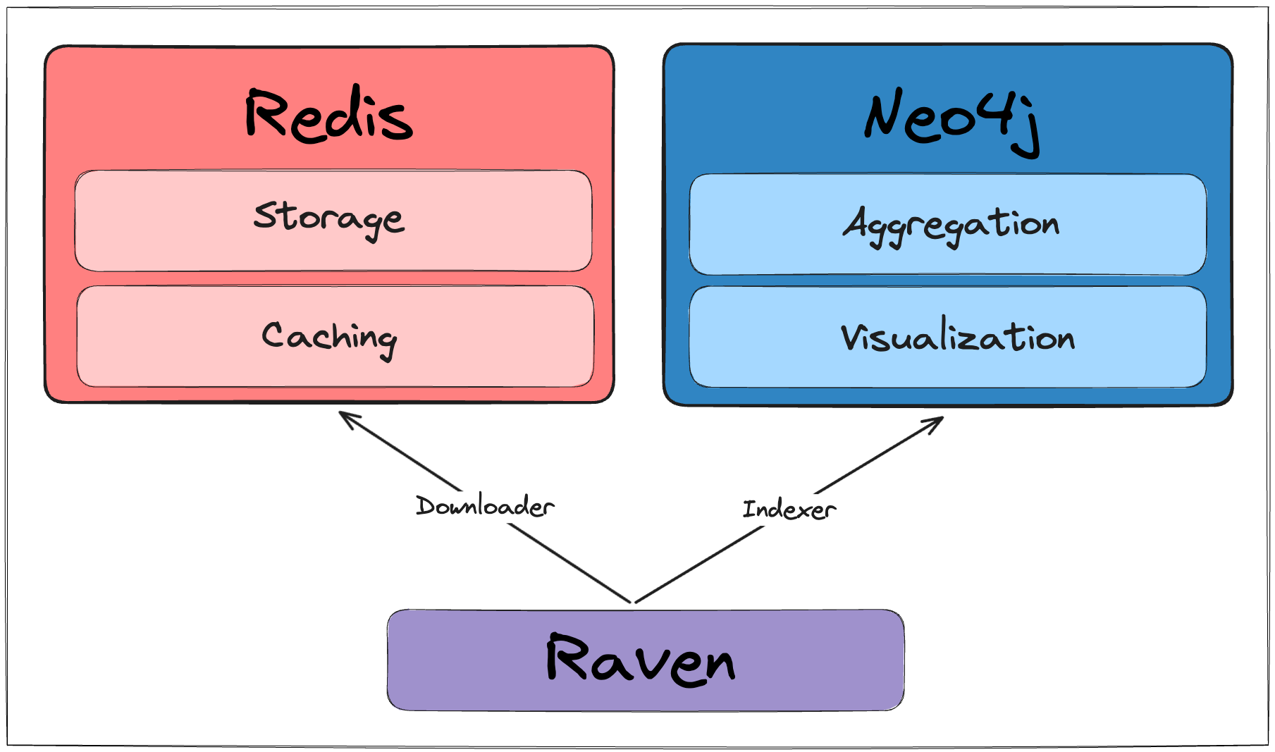 Raven is using two primary docker containers: Redis and Neo4j.