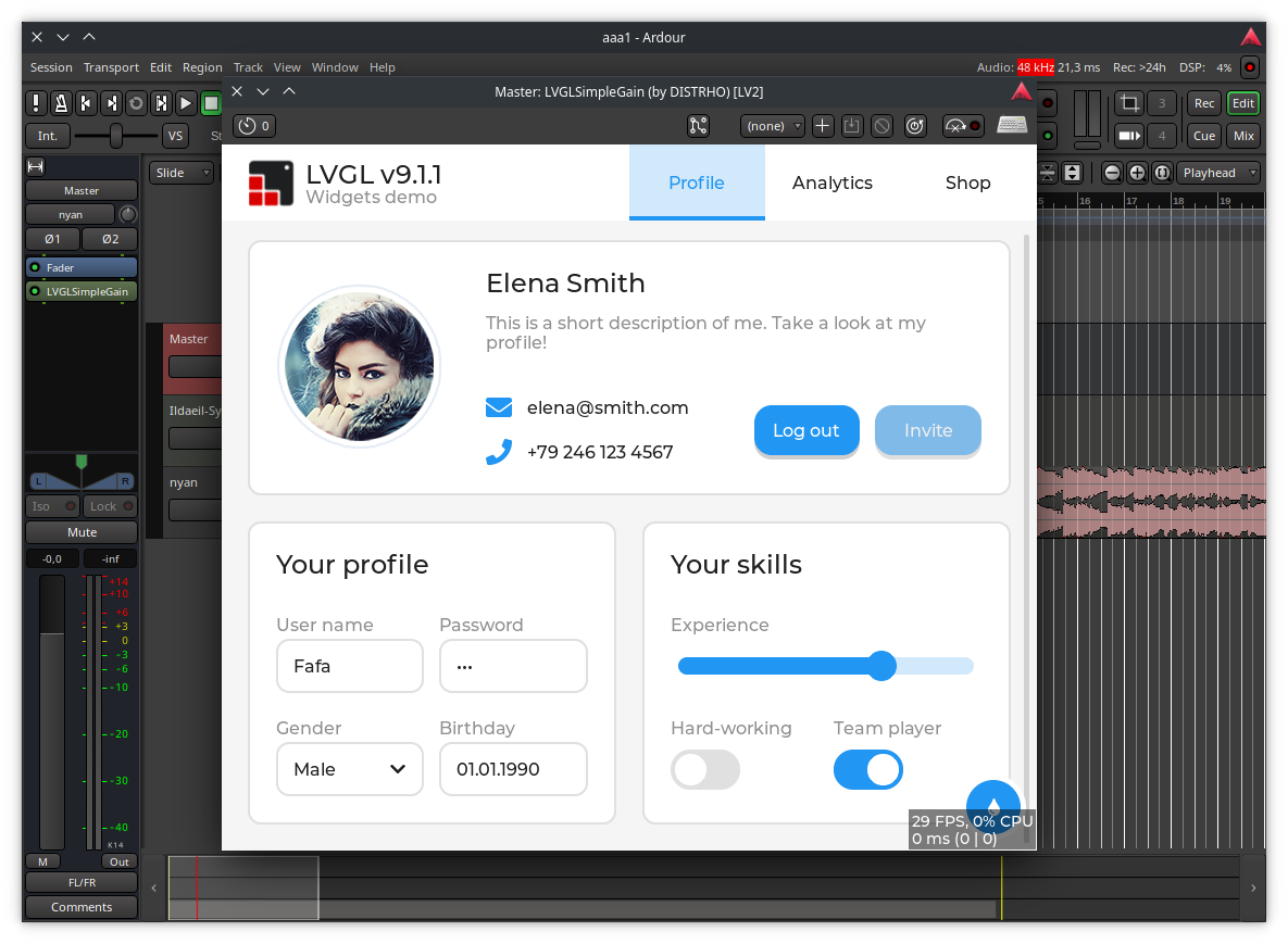 Exposes the LVGL drawing API inside a DGL Widget. This class will take care of setting up LVGL for drawing, and also user input, resizes and everything in between.