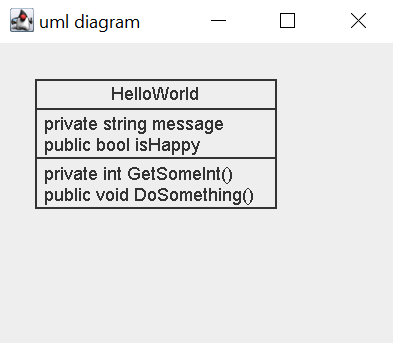 Now a new window should pop up, containing a UML diagram of your class. Congrats, you created your first UML diagram!