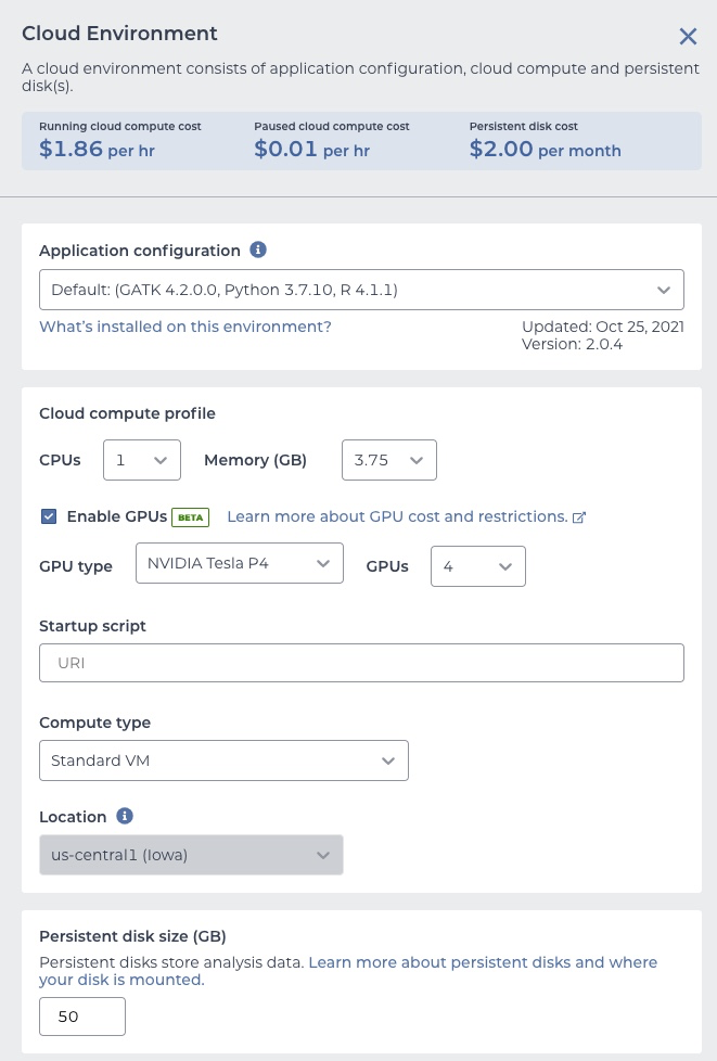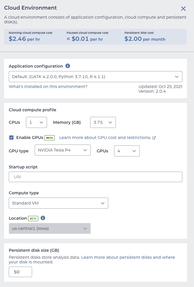 Follow up from #2660 . Phase 2 allows Cloud Environments to be created outside of us-central1. This becomes available if your workspace bucket is outside of the US.