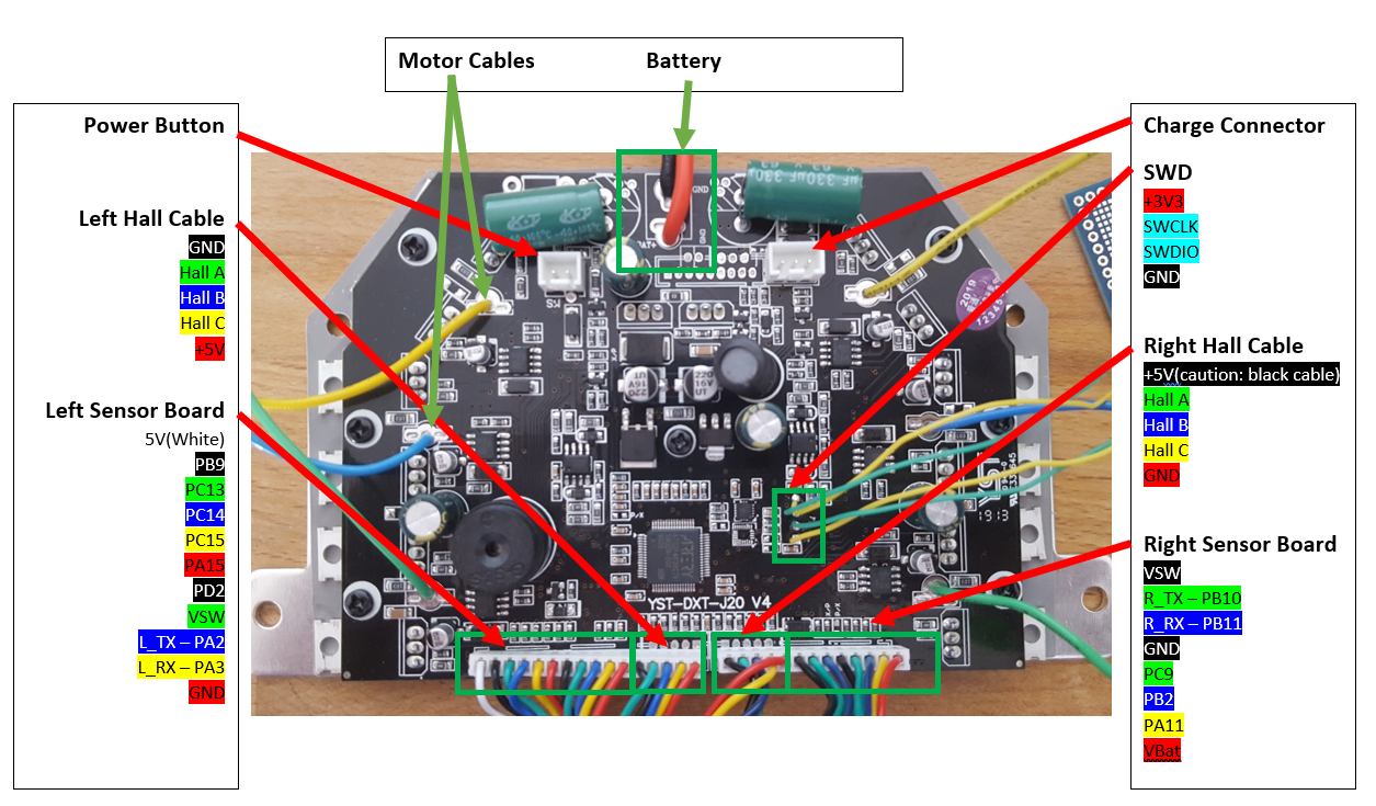 | TX/SCL/PWM | PB10 | Right sensor cable | |