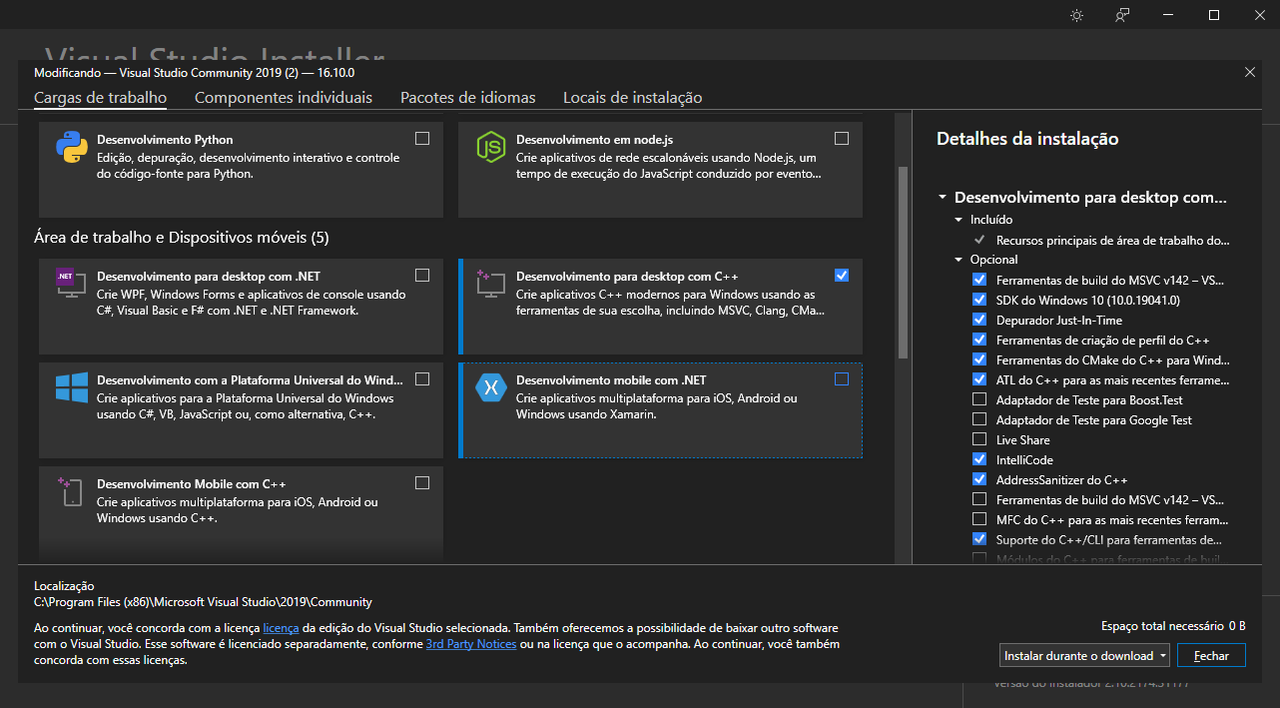 - Pay attention to the checkboxes at the right, you don't need all of them and you can save a lot of disk space by unchecking some of them. I can't tell for sure which ones are expressly required, but most of them are unimportant.