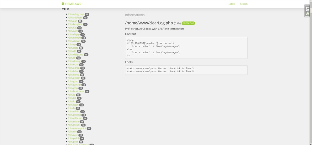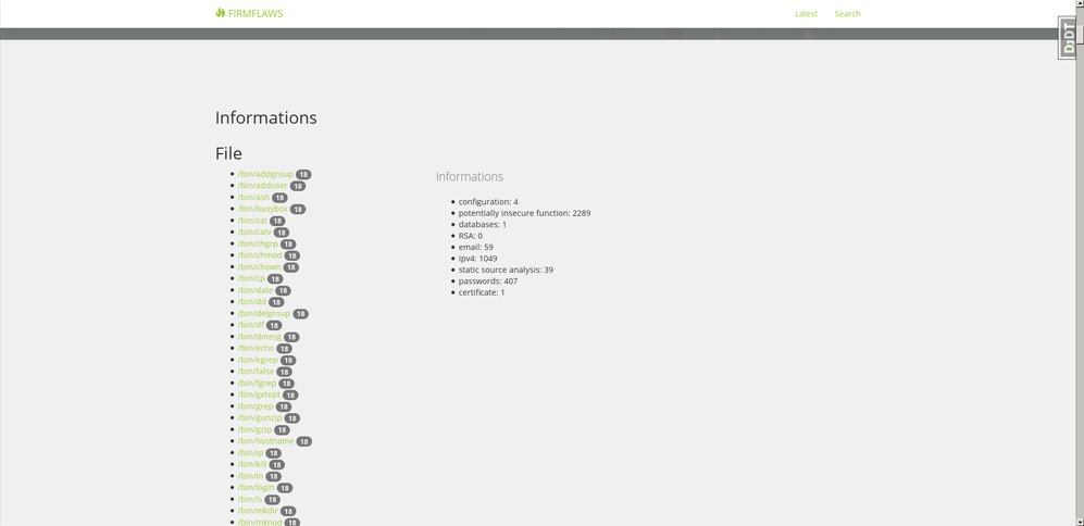 Firmware analysis Website and API (JSON)