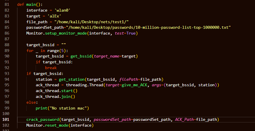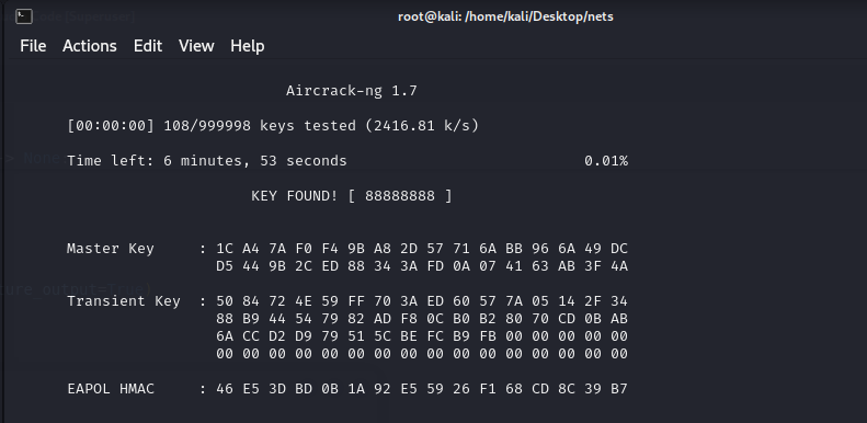 aircrack-ng -a2 -b 6A:D1:4D:7D:BE:72 -w /home/kali/Desktop/passwords/10-million-password-list-top-1000000.txt /home/kali/Desktop/nets/test1/*.cap