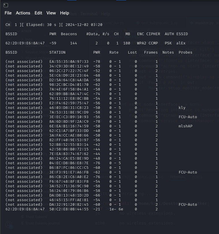 airodump-ng --bssid 6A:D1:4D:7D:BE:72 -c 1 -w /home/kali/Desktop/nets/test1 wlan0