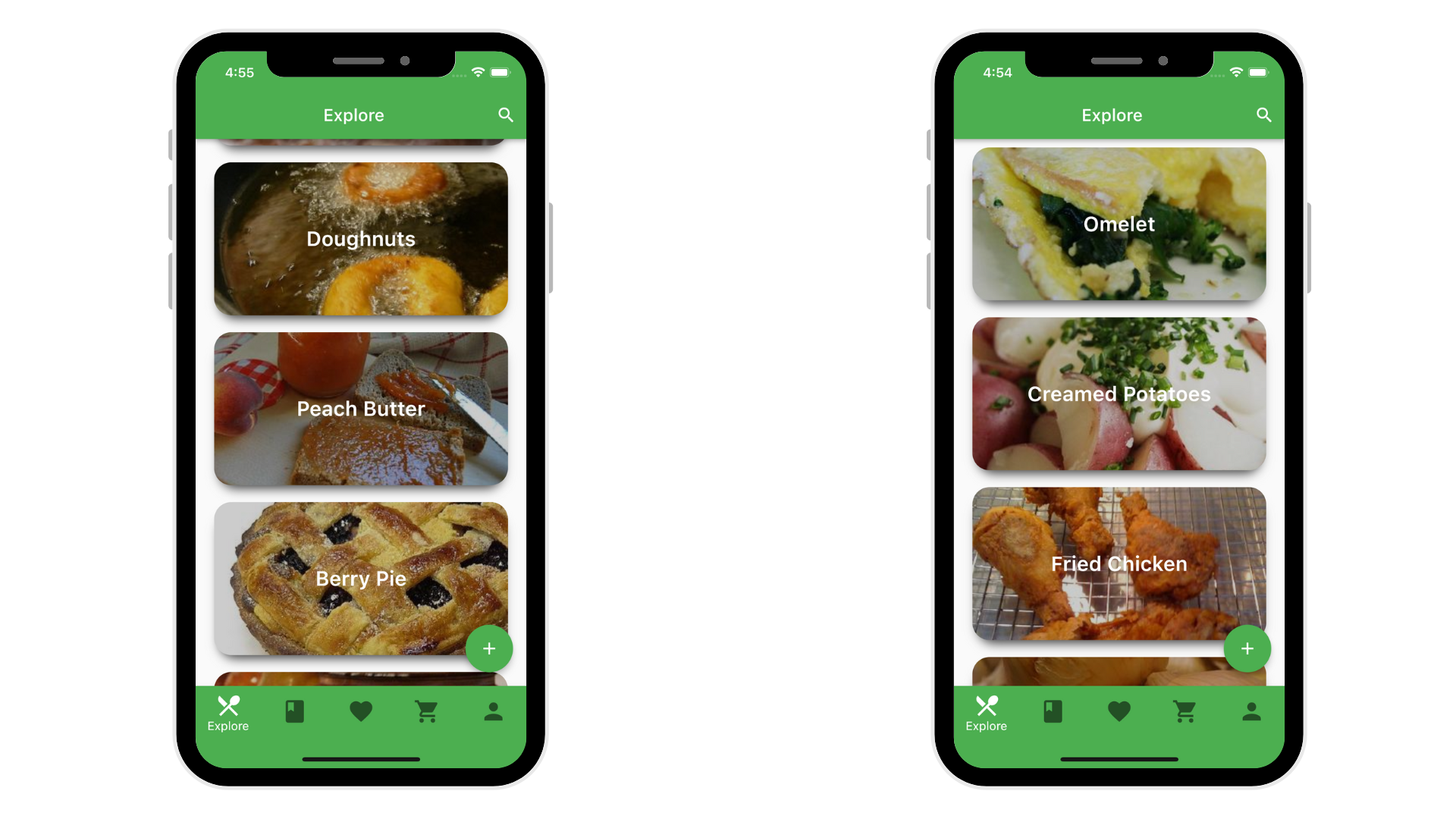 This is the first page displayed in the app when opened, from here you can scroll through a list of recipes which can be clicked on to view the recipe. This page pulls recipes in from our database 30 at a time using pagination. The recipes in our MongoDB database were scraped from publicdomainrecipes.org