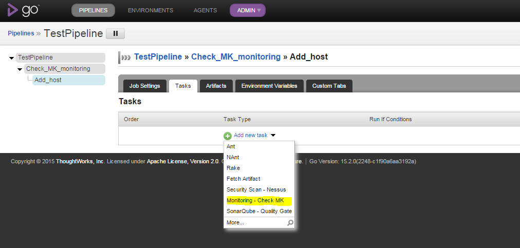 Select "Monitoring - Check MK" from add task drop down list.