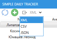 Application supports 3 types of export: XML, CSV and JSON: