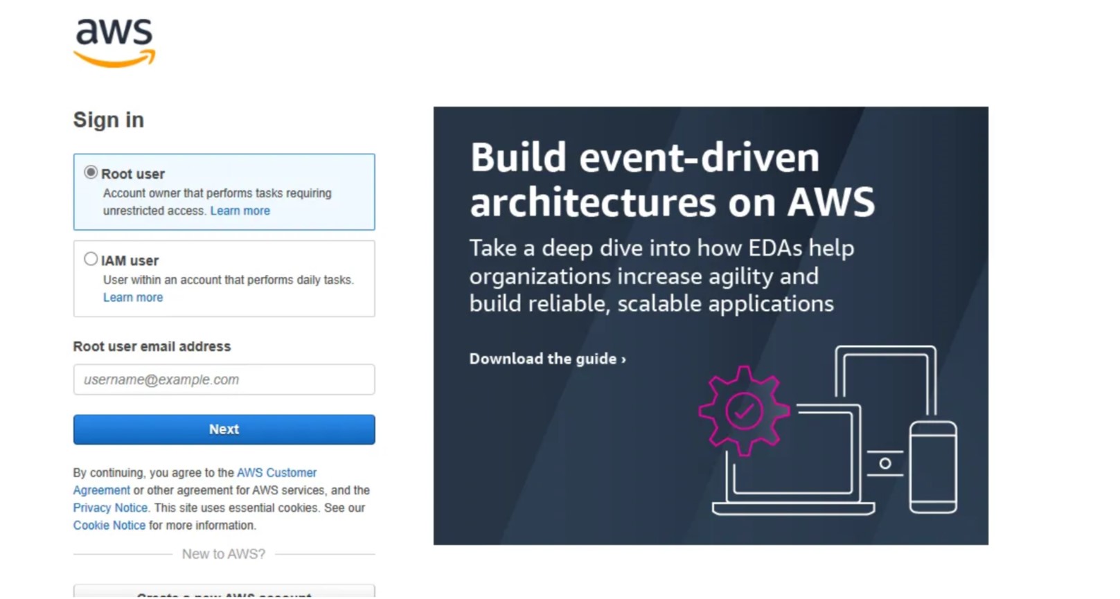 2. First, go to the AWS Console. If you don’t have an account yet, start by creating one.