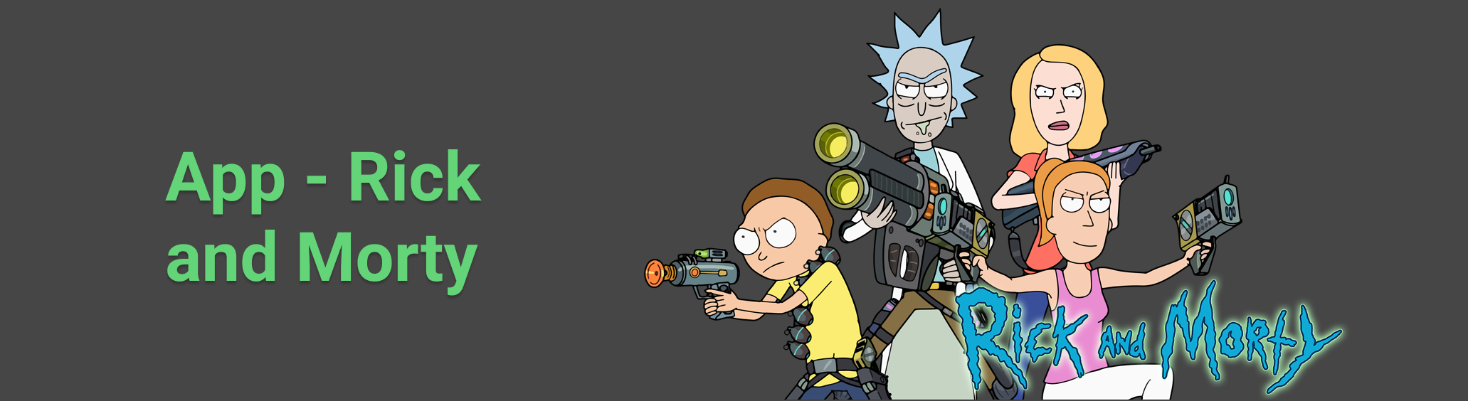 O objetivo dessa aplicação é fornecer um guia sobre o desenho 'Rick and Morty' lançado em 2013, pela Adult Swim, que acompanha as malucas viagens no tempo-espaço e por universos paralelos de Rick, um cientista com problemas com a bebida, e seu neto Morty, um adolescente não tão brilhante quanto o avô.