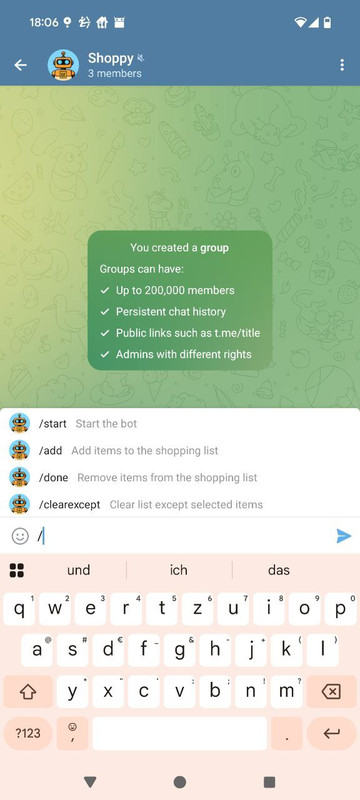 - Start a direct Chat or add the Bot to a group