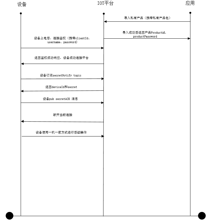 一机一密模式,即一个设备在平台申请一个密码,流程图如下所示: