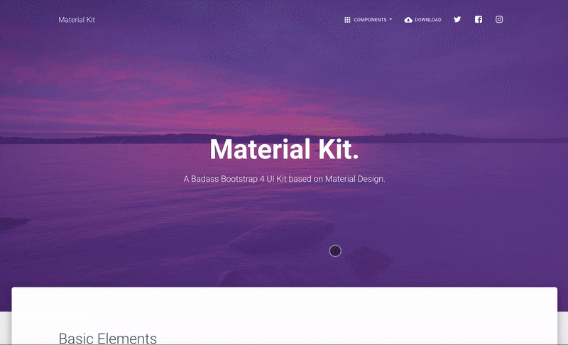 Material Kit is a Free Bootstrap 4 UI Kit with a fresh, new design inspired by Google's material design. You asked for it, so we built it. It's a great pleasure to introduce to you the material concepts in an easy to use and beautiful set of components. Along with the restyling of the Bootstrap elements, you will find three fully-coded example pages, to help you design your next project.