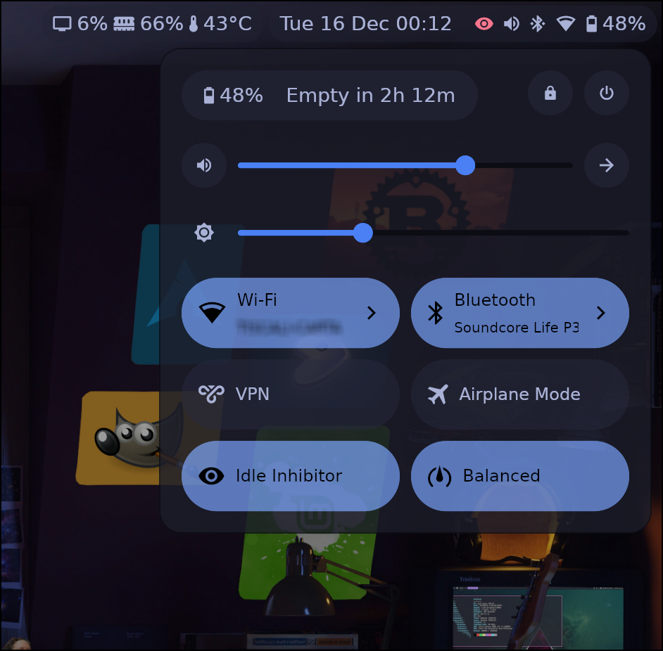 ashell is a ready to go Wayland status bar for Hyprland and Niri.