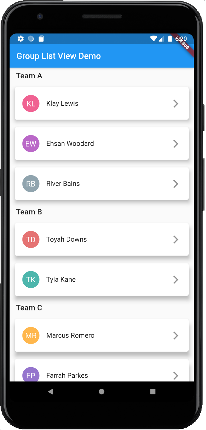 import 'package:group_list_view/group_list_view.dart';Instead of using a ListView create a GroupListView Widget:
