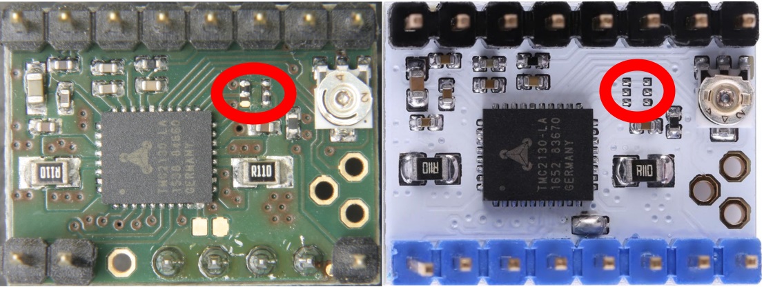 Unsolder the wires and solder again. even the colors of the wires took the same as in the picture: https://hackadaycom.files.wordpress.com/2016/09/tmc-wiring-01.jpg