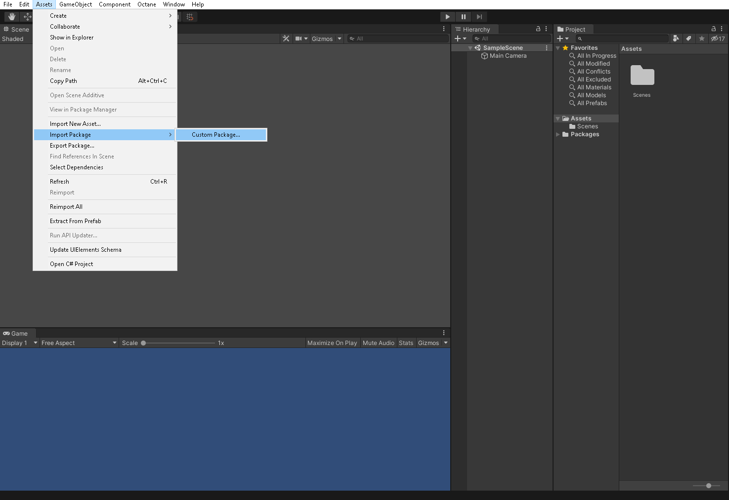 - Go to Assets --> Import Package --> Custom Package