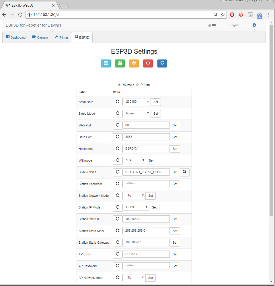 ESP3D settings Editor: