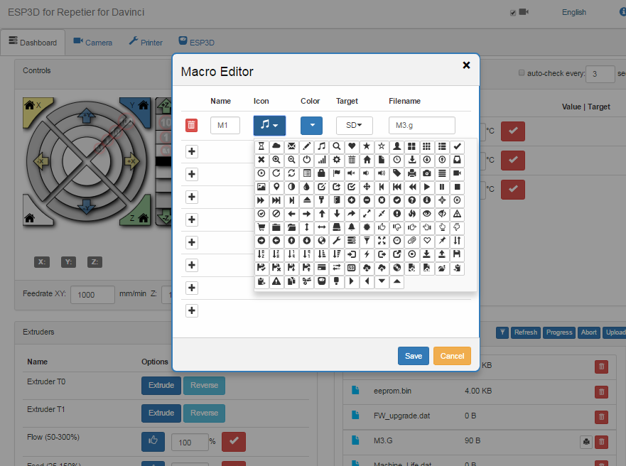 - It has a macro support to add custom commands in UI by adding buttons launching some GCODE files from SD or ESP