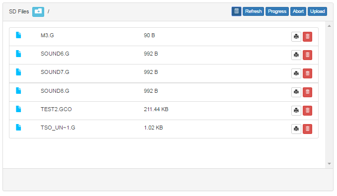 The result is a monolitic file with a minimal size allowing almost full control of ESP3D board and your 3D printer