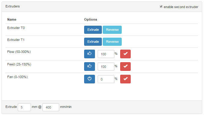 Extruder panel: