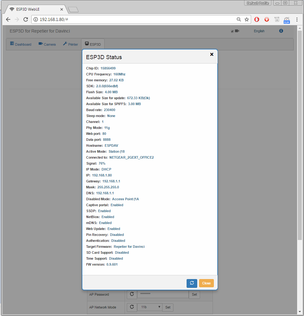 ESP3D Status:
