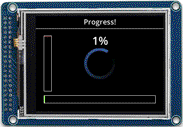 The progress example displays high frame rate animations of progress bars and a spinner, all of which are useful for loading screens.