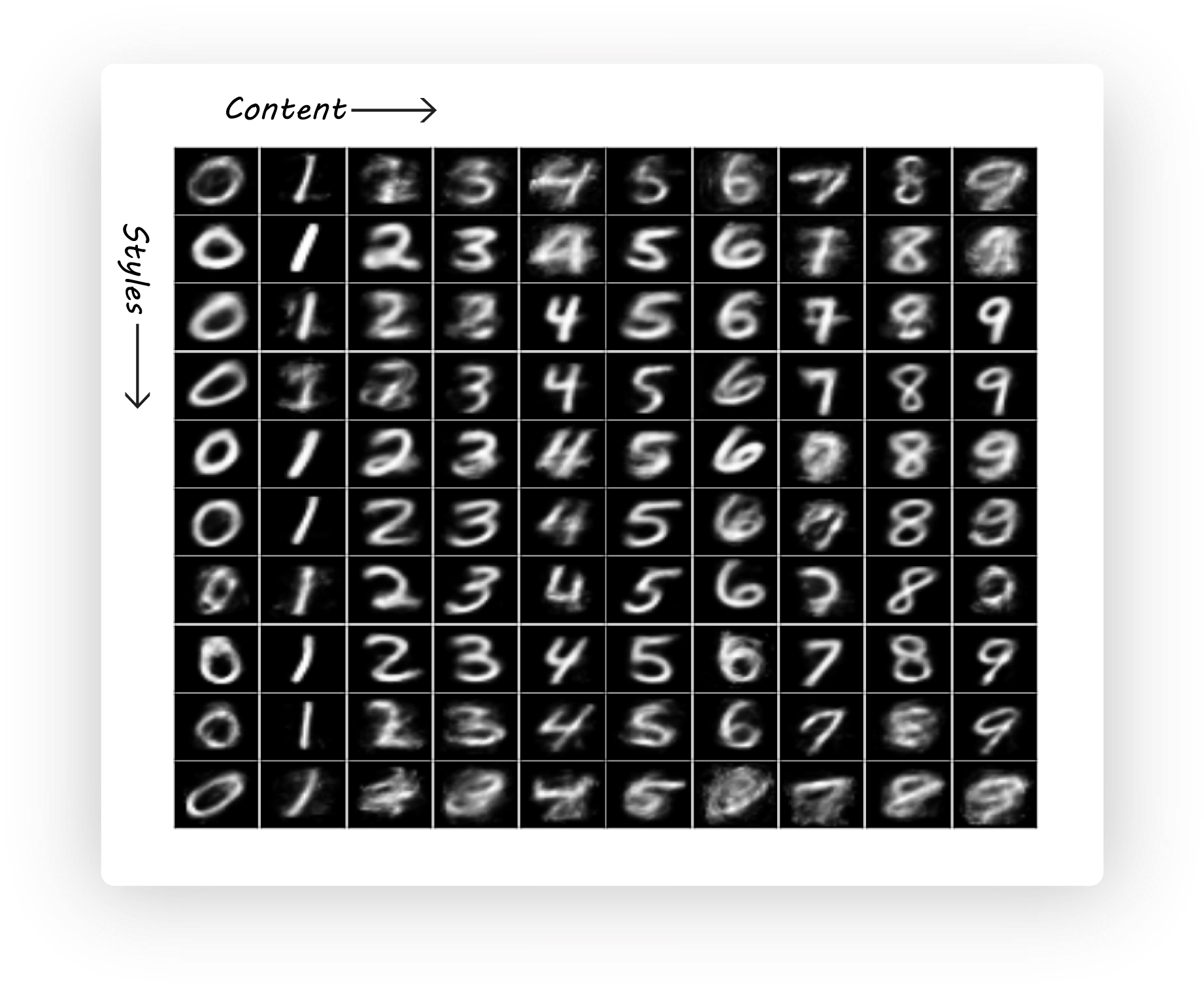 Example of disentanglement of style and content:
