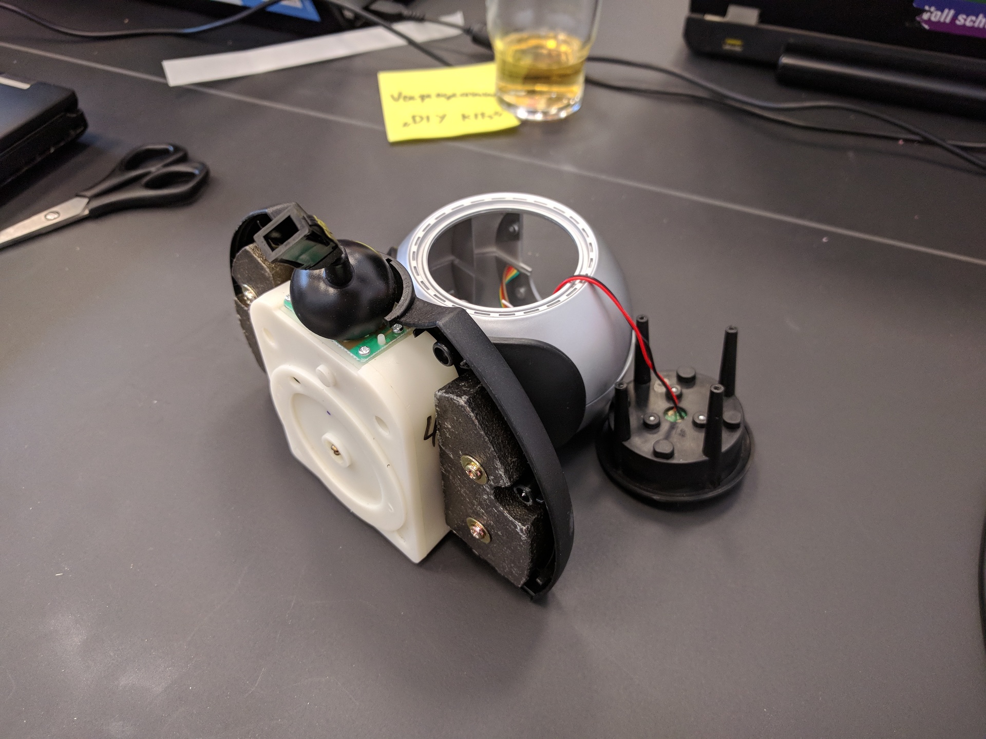 To open the Gametrak, six screws need to be unscrewd per side. The cable to the mechanic can be cut.
