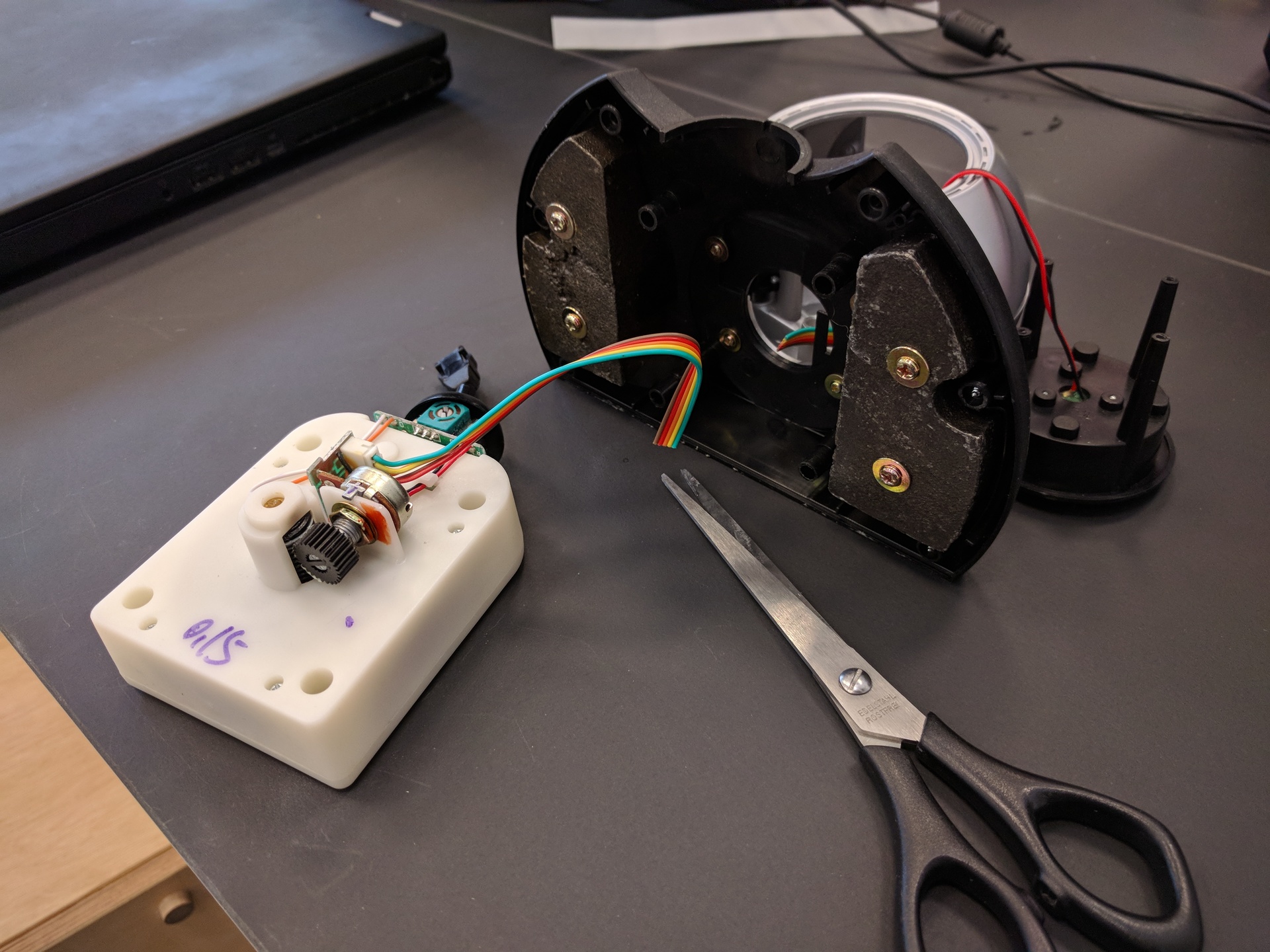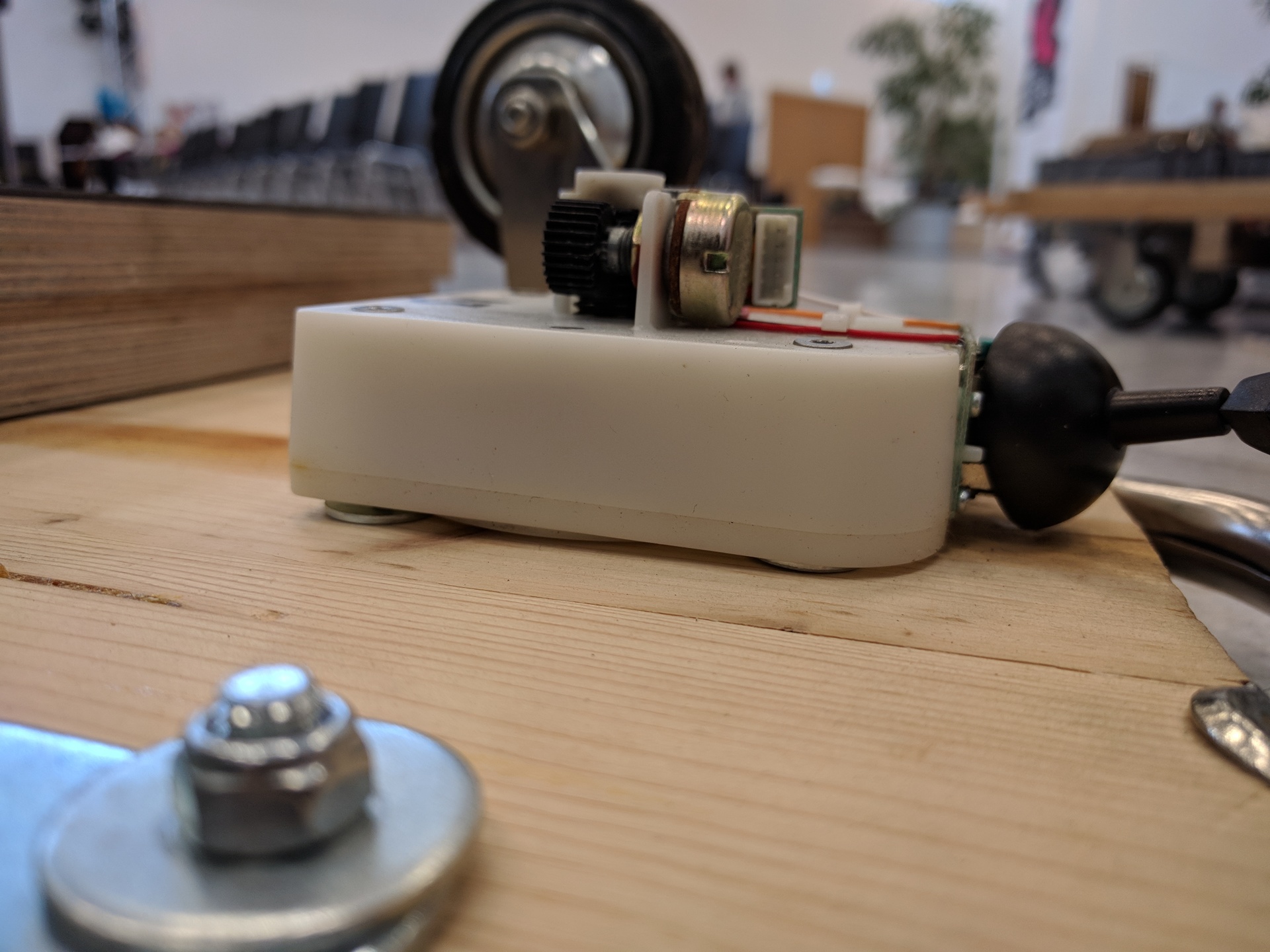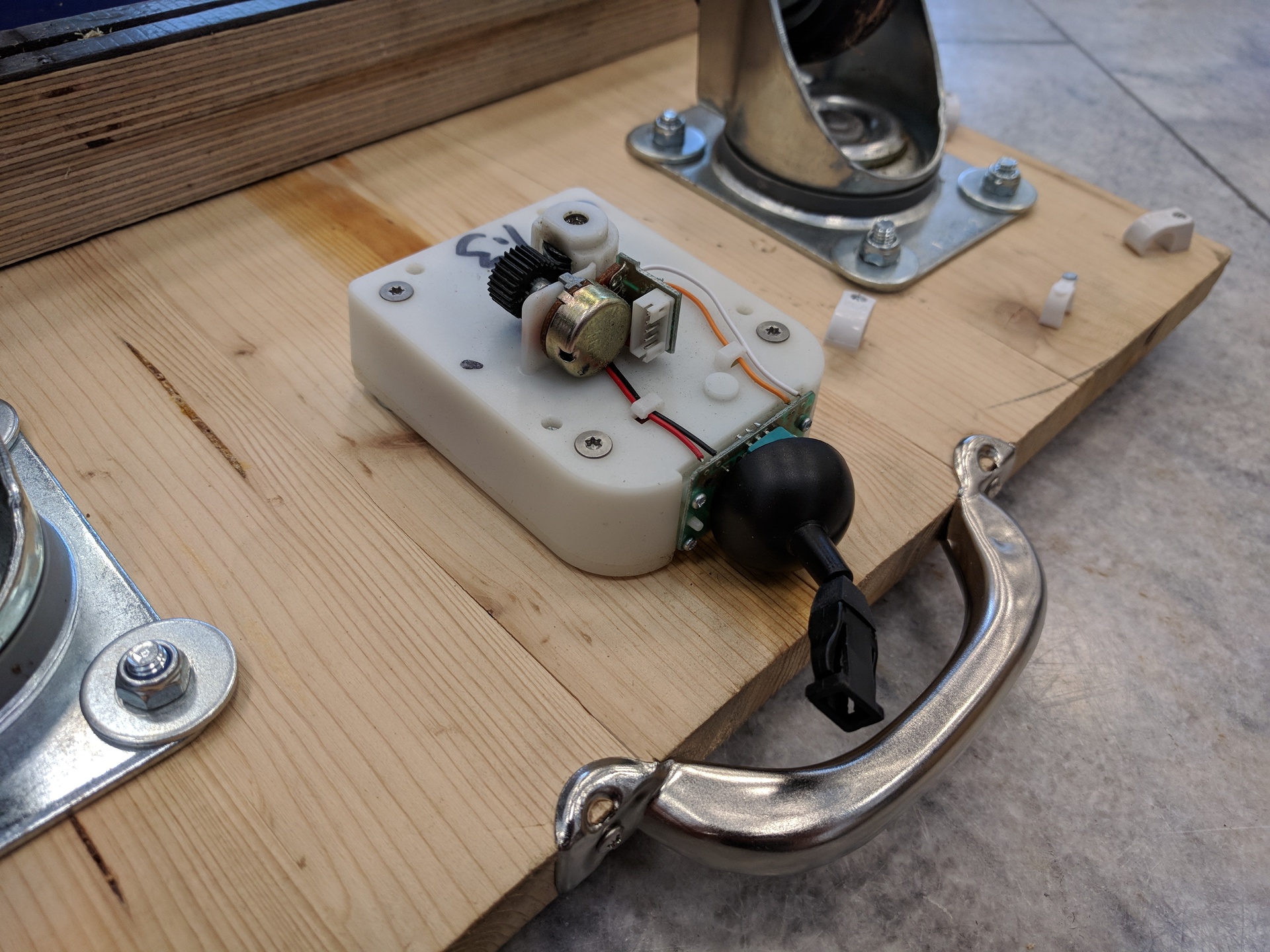 Disconnect the cable you just made from the gametrak pcb. This makes it easier to mount the gametrak on the wooden baseplate.