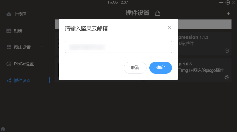 输入坚果云邮箱,点击确定