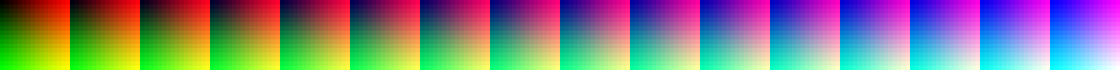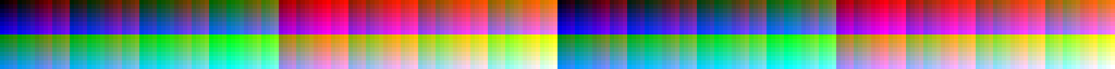 The above image shows a tiled RGBA 16x16x16 pixel 3D lut. The different colored blocks correspond to a 16x2 grid of GOBs ("groups of bytes" from the Tegra TRM). GOBs are 64x8 bytes (512 total bytes), which in this case is 16x8 pixels. The untiled or linear version is shown below.