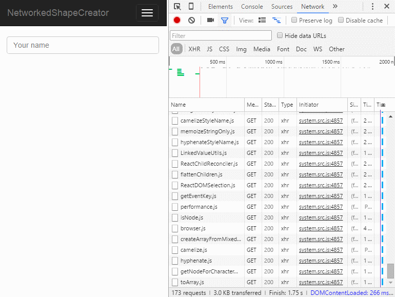 Since we don't have the luxury of HTTP 2's multiplexed requests in VS.NET's WebDev server, we need another way to get the network requests countdown which we've built into the template with the 00-update-deps-js Gulp task which will create an interim bundle with all the 3rd Party dependencies in our deps.tsx: