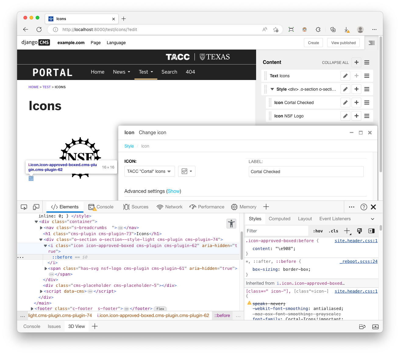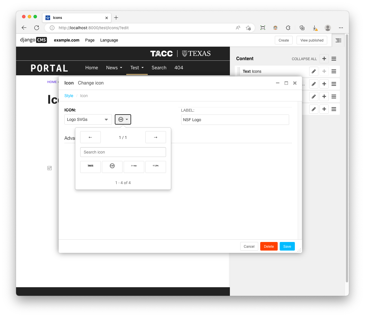 <i class="icon icon-whatever'></i>) is not easy for basic CMS editors and has no source of truth.† Because Django Filer (Django CMS uses this for file management) does not support SVG.