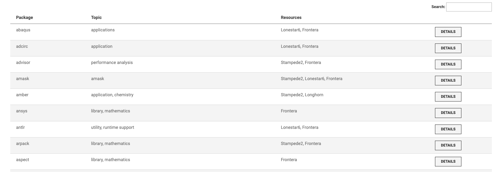 Add a software table that can be inserted into CMS pages via snippet