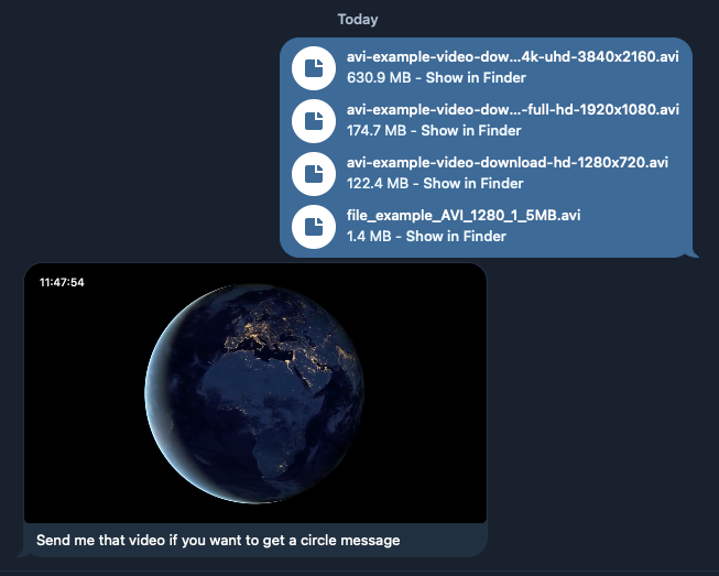 - By sending caption along with the video, the bot will not send the video personally, but to the channels specified in config.json