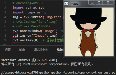 cv2.waitKey(0) # 等待键盘触发事件,释放窗口图片转矩阵