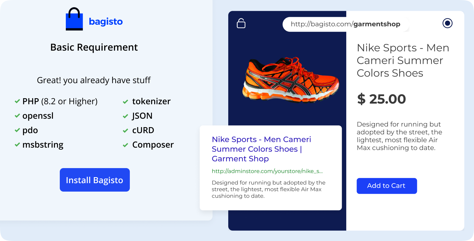 Bagisto can help you cut down your time, cost, and workforce for building online stores or migrating from physical stores to the ever-demanding online world. Your business—whether small or huge—can benefit. The best part, it's straightforward to set it up!