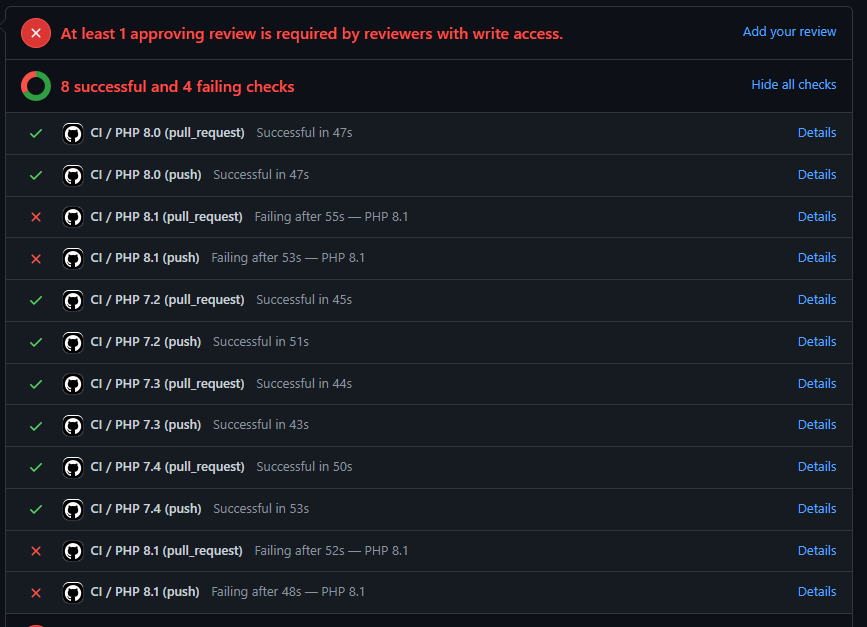 | php: ['8.0', '8.1'] |