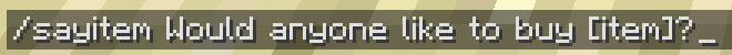 /sayitem [-j] <Text>- DisplaysTextin chat with all item placeholders replaced. Use the-jflag to enable parsing JSON placeholders