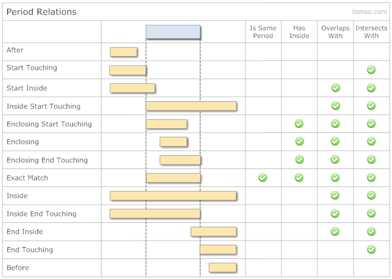 Below is a chart of all the possible relationships between two time periods: TimePeriods