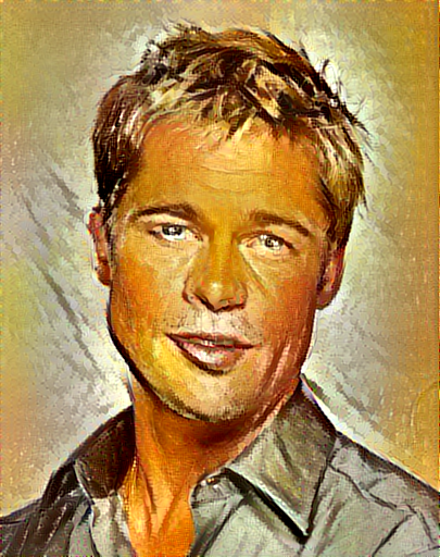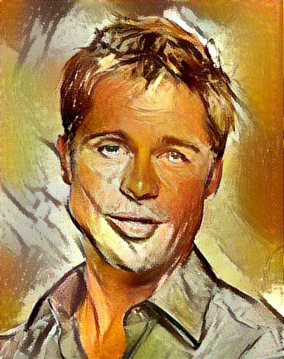 The algorithm allows the user to trade-off the relative weight of the style and content reconstruction terms, as shown in this example where we port the style of Picasso's 1907 self-portrait onto Brad Pitt: