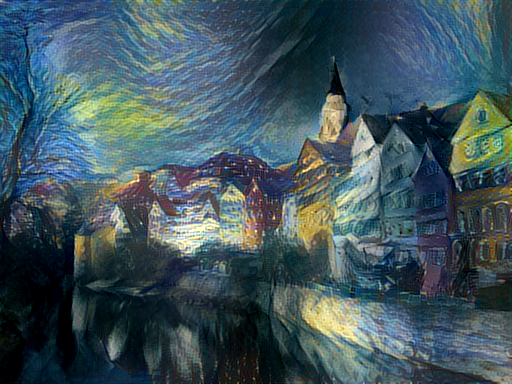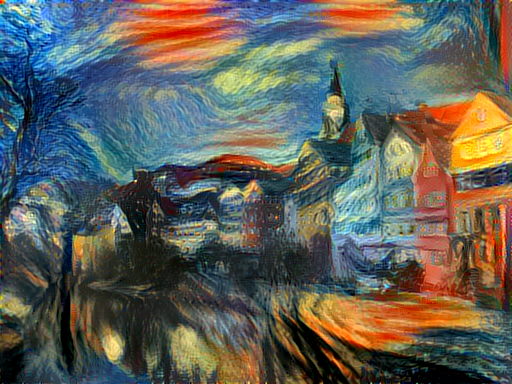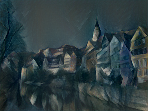 Applying the style of different images to the same content image gives interesting results. Here we reproduce Figure 2 from the paper, which renders a photograph of the Tubingen in Germany in a variety of styles: