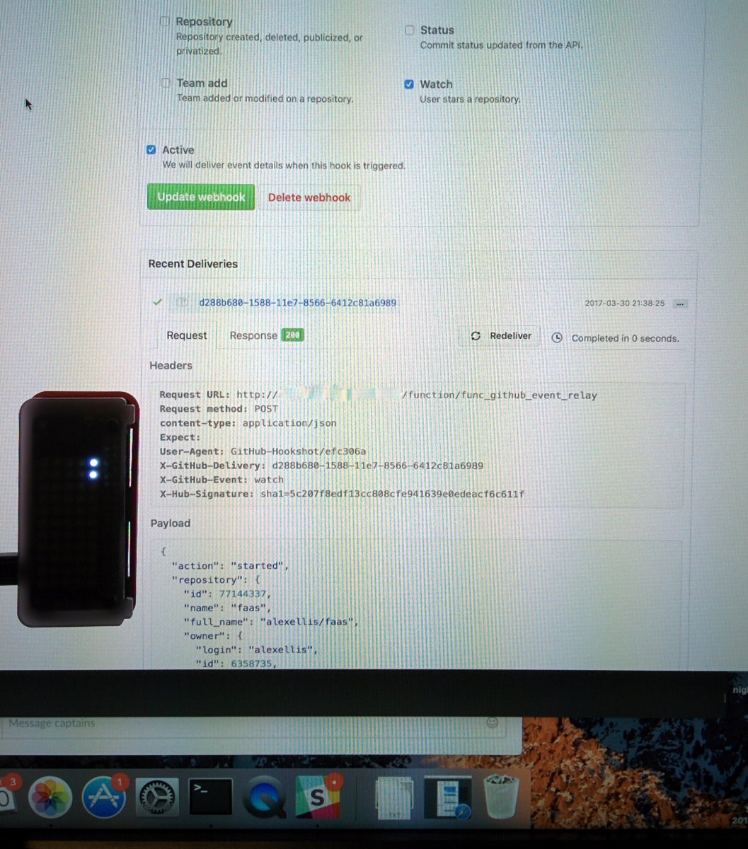 - how to integrate with Github webhooks via the FaaS API Gateway