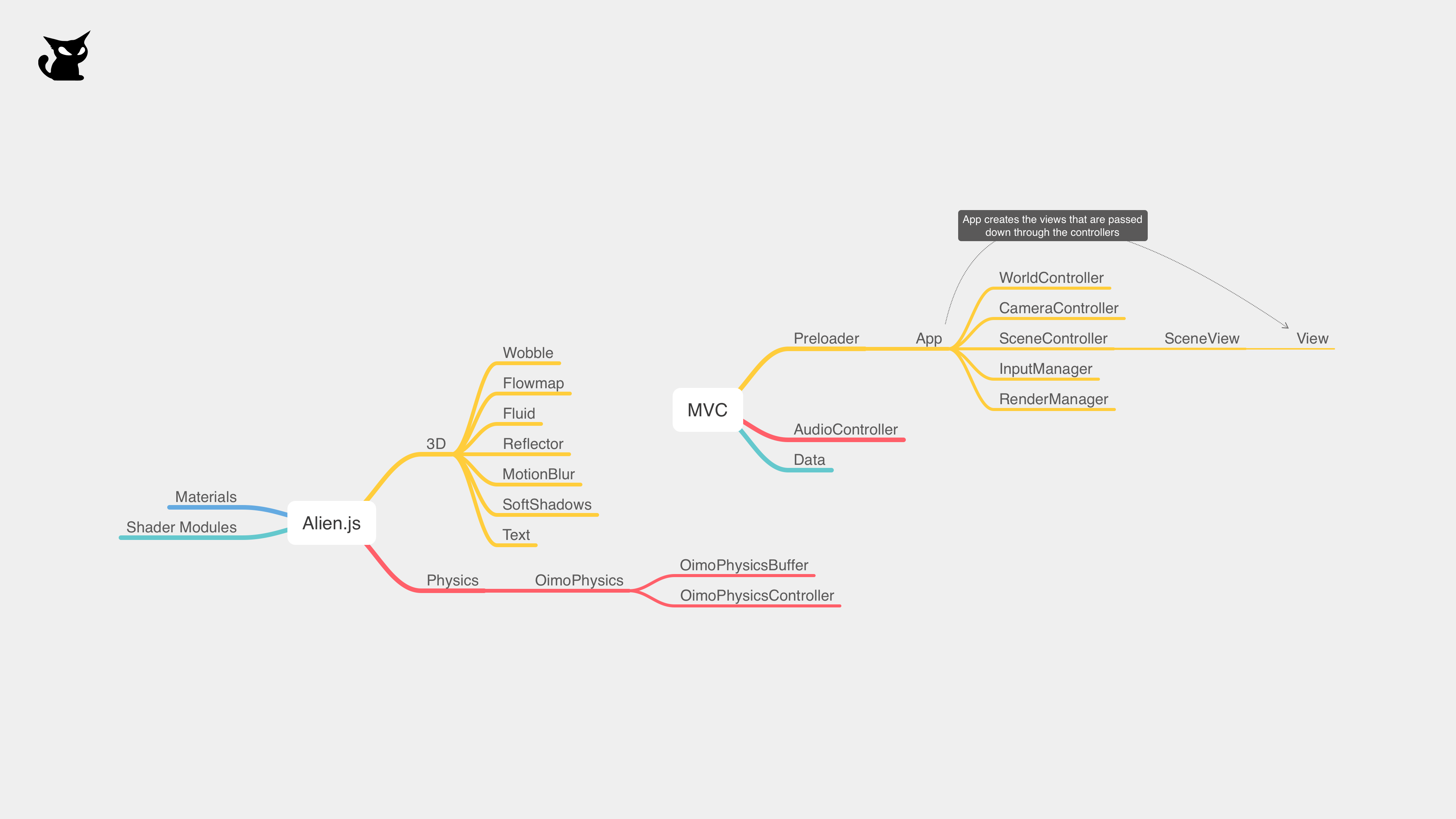 This library is part of two sibling libraries, Space.js for UI, Panel components, Tween, Web Audio, loaders, utilities, and Alien.js for 3D utilities, materials, shaders and physics.